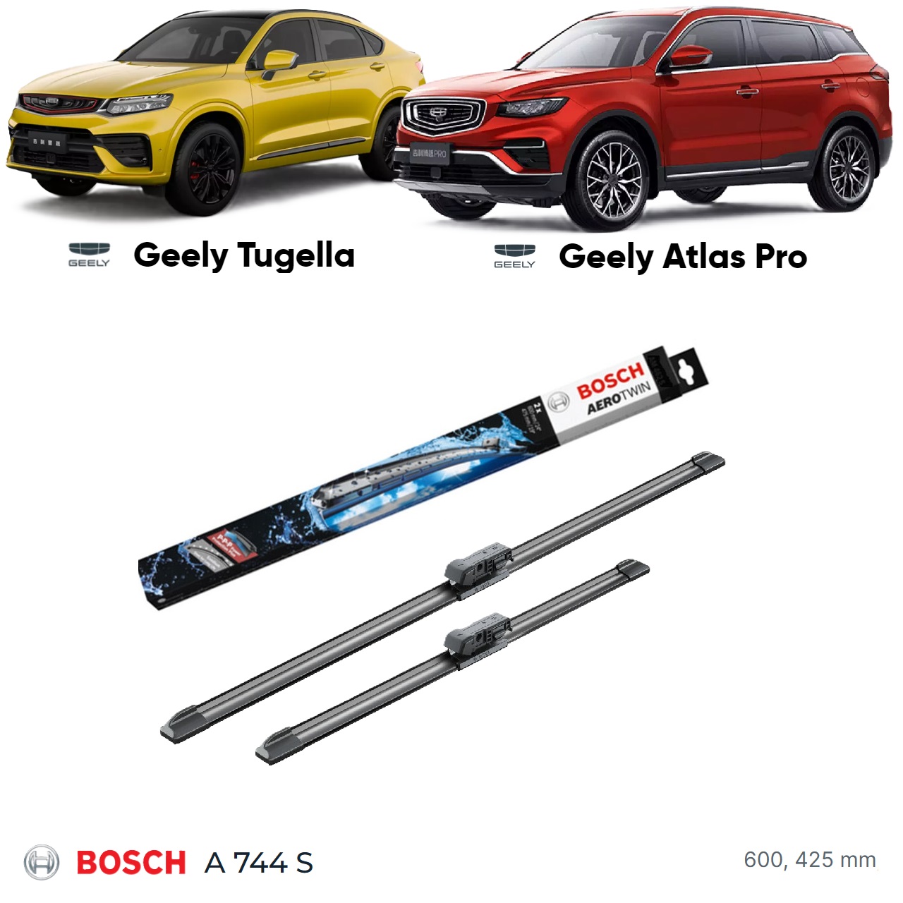 комплект из двух бескаркасных дворников длиной 600 мм и 425 мм
