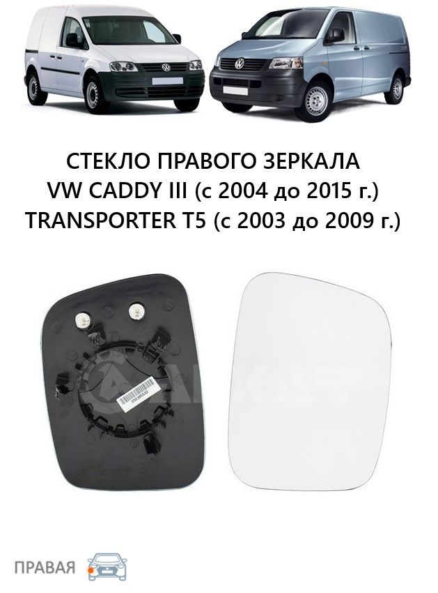 Зеркало VW Caddy III (2004-2015г), Transporter T5 (2003-2009г)